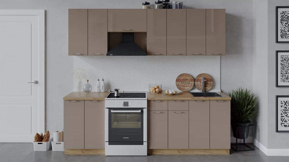 Кухонный гарнитур «Весна» длиной 240 см Дуб крафт золотой/Кофе с молоком