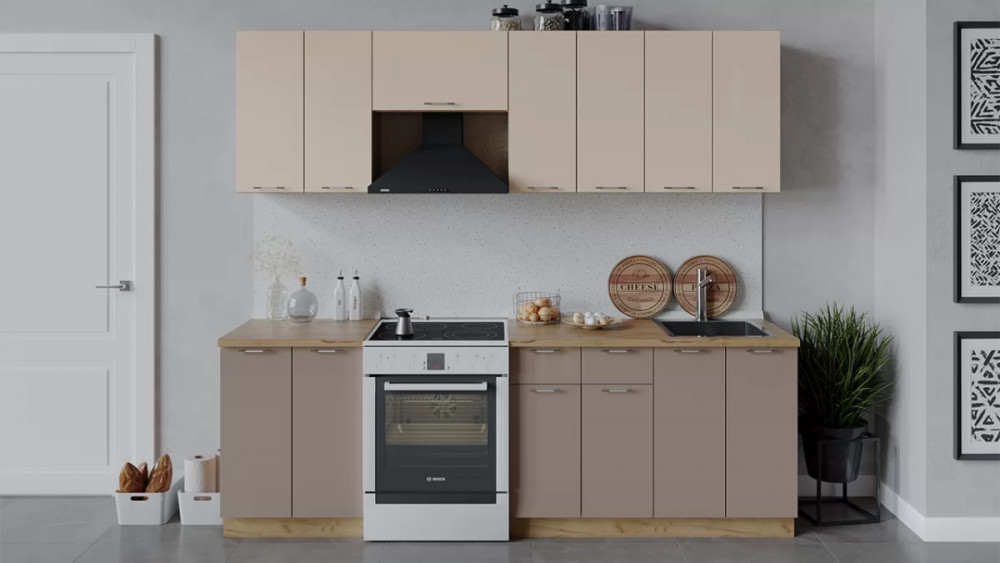 Кухонный гарнитур «Весна» длиной 200 см Дуб крафт золотой/Кофе с молоком