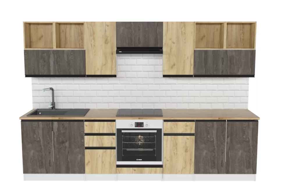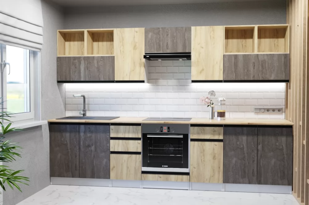 Кухонный прямой гарнитур арт.20 ЛОФТ, 2200 мм, Рустик натур/Бетон темный/Дуб Бунратти