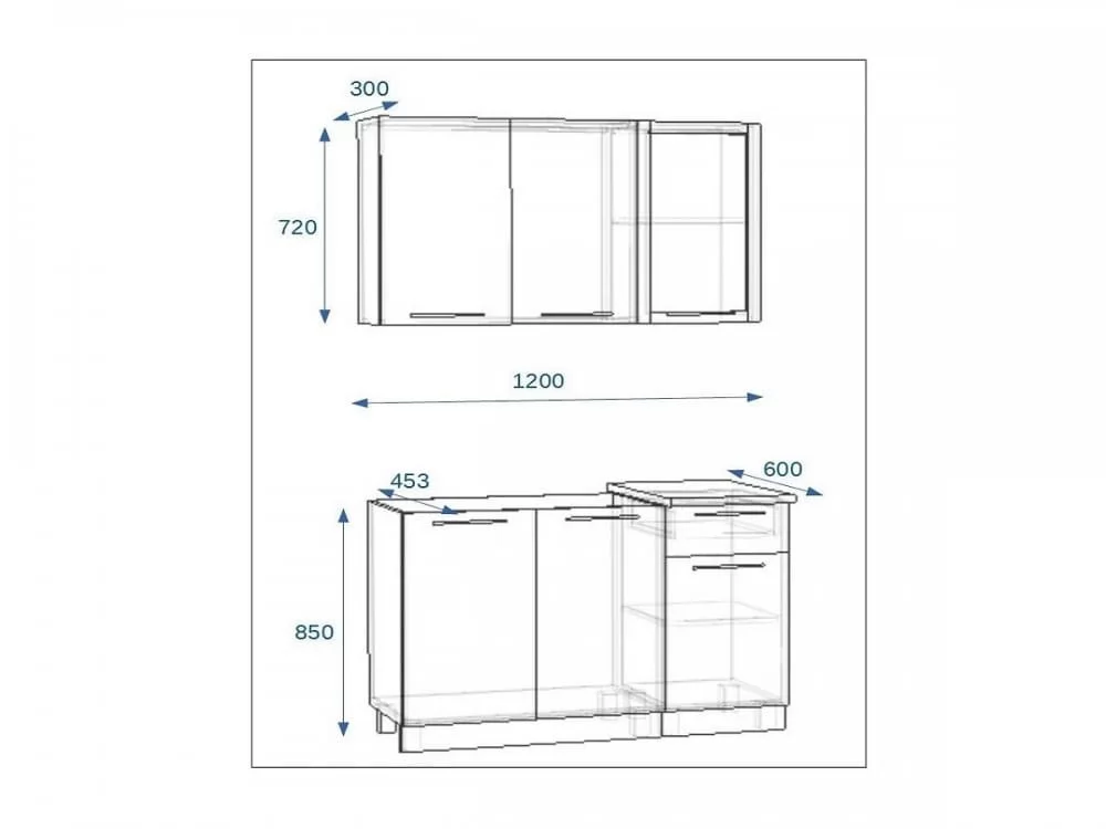 Кухонный прямой гарнитур 3, 1200 мм, Грецкий орех