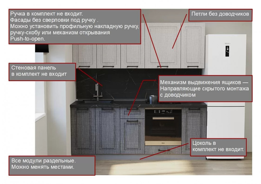 Кухонный прямой гарнитур Аликанте арт.35, 2800 мм, Обсидиан/Шарли Pink
