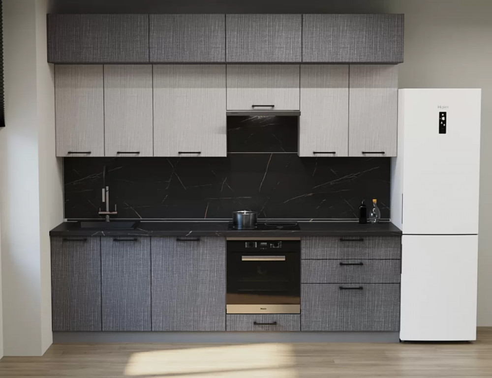 Кухонный прямой гарнитур Аликанте арт.35, 2800 мм, Обсидиан/Шарли Pink