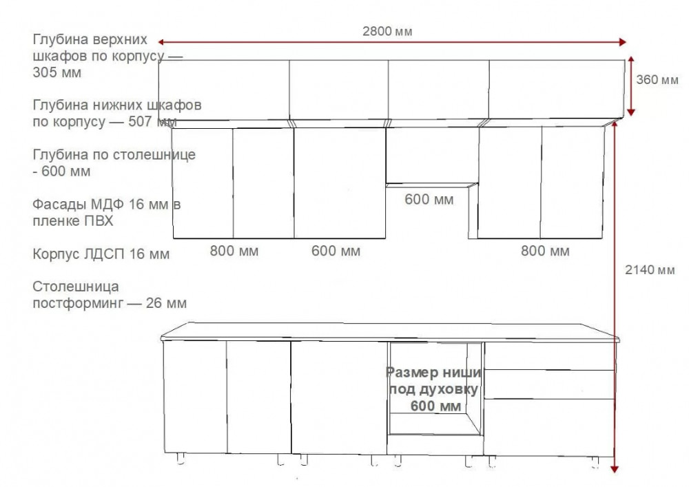 | Ширина гарнитура | 2800 мм |