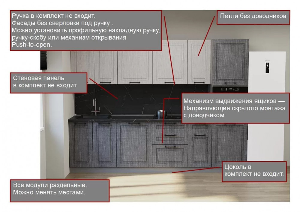 Кухонный прямой гарнитур Аликанте арт.35, 2800 мм, Обсидиан/Шарли Pink