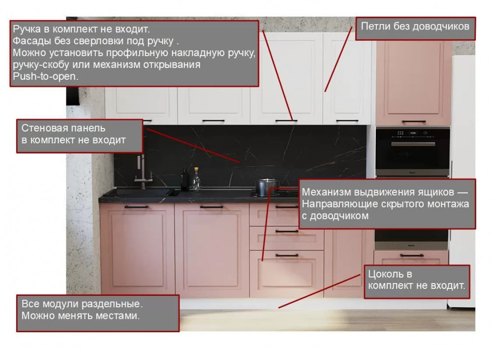 Ориентация изделия: ПрямаяГлубина: 60 смШирина: 280 смВысота: 214 смМатериал фасада: МДФМатериал корпуса: ЛДСПЦвет фасада: Шарли Pink, Шарли белыйФрезеровка: ЕстьФрезеровка (Рисунок): АликантеСтекла: НетЦвет корпуса: белыйЦвет столешницы: Каспий черное золотоНаправляющие ящиков: Направляющие скрытого монтажа с доводчикомСтиль: Современный