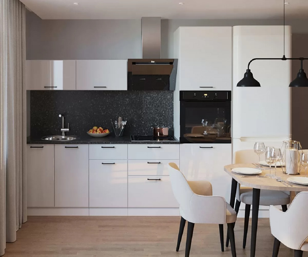 Кухонный прямой гарнитур арт.1, 2400 мм, Белый глянец