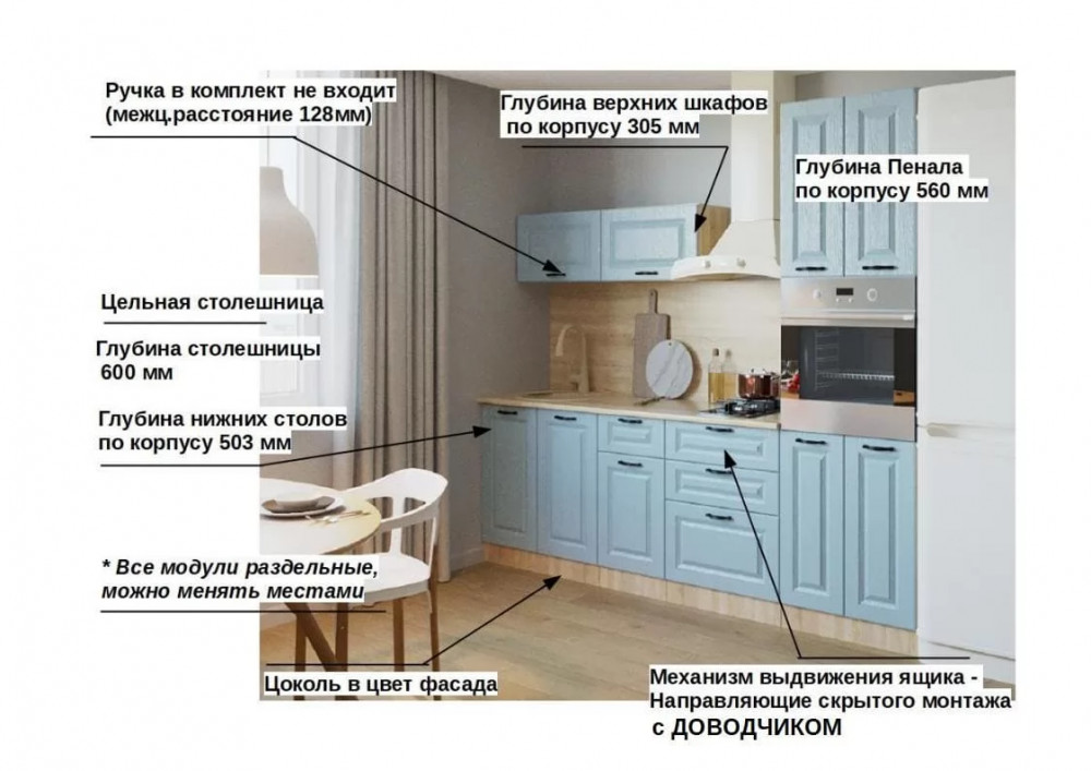 Кухонный прямой гарнитур арт.20, 3000 мм, Роял Вуд Голубой/Вегас