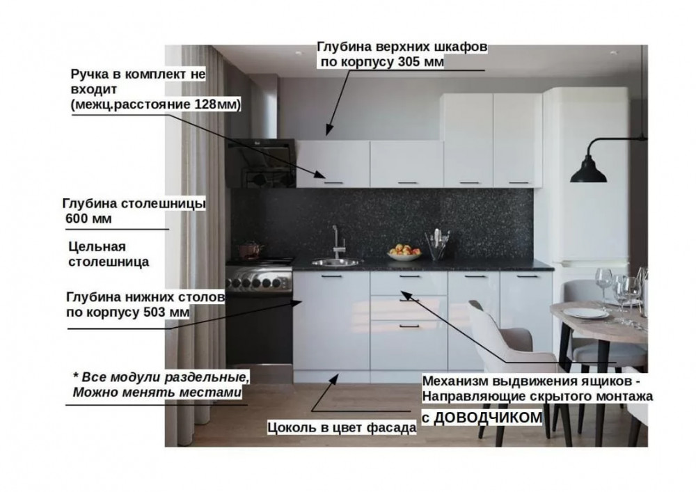 Кухонный угловой гарнитур арт.8, 1000x2400 мм, Белый глянец