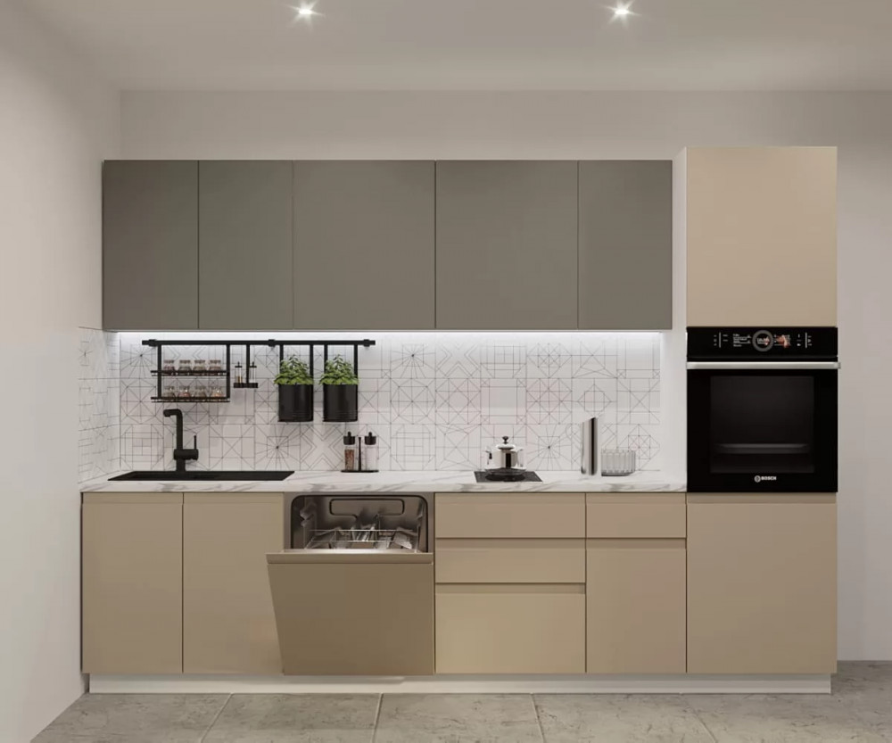 Кухонный прямой гарнитур арт.16, 3000 мм, Лайн/Тальк/Обсидиан