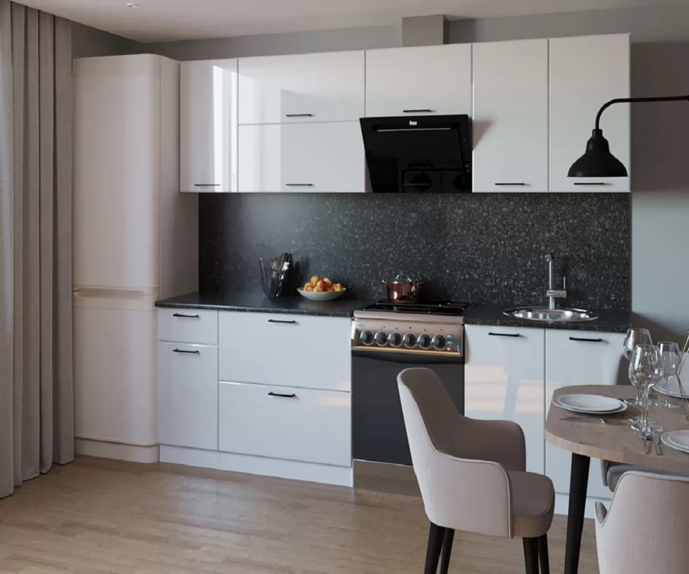 Кухонный прямой гарнитур арт.14, 2600 мм, Белый глянец