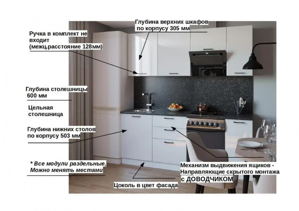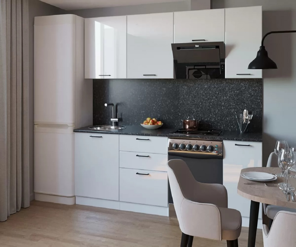 Кухонный прямой гарнитур арт.16, 2200 мм, Белый глянец