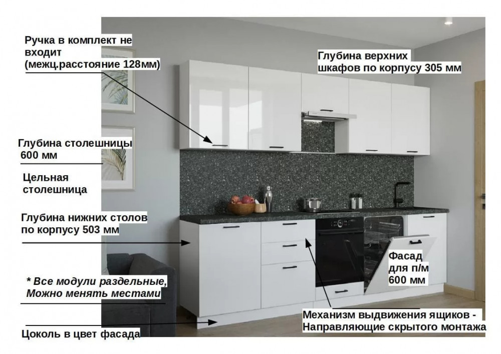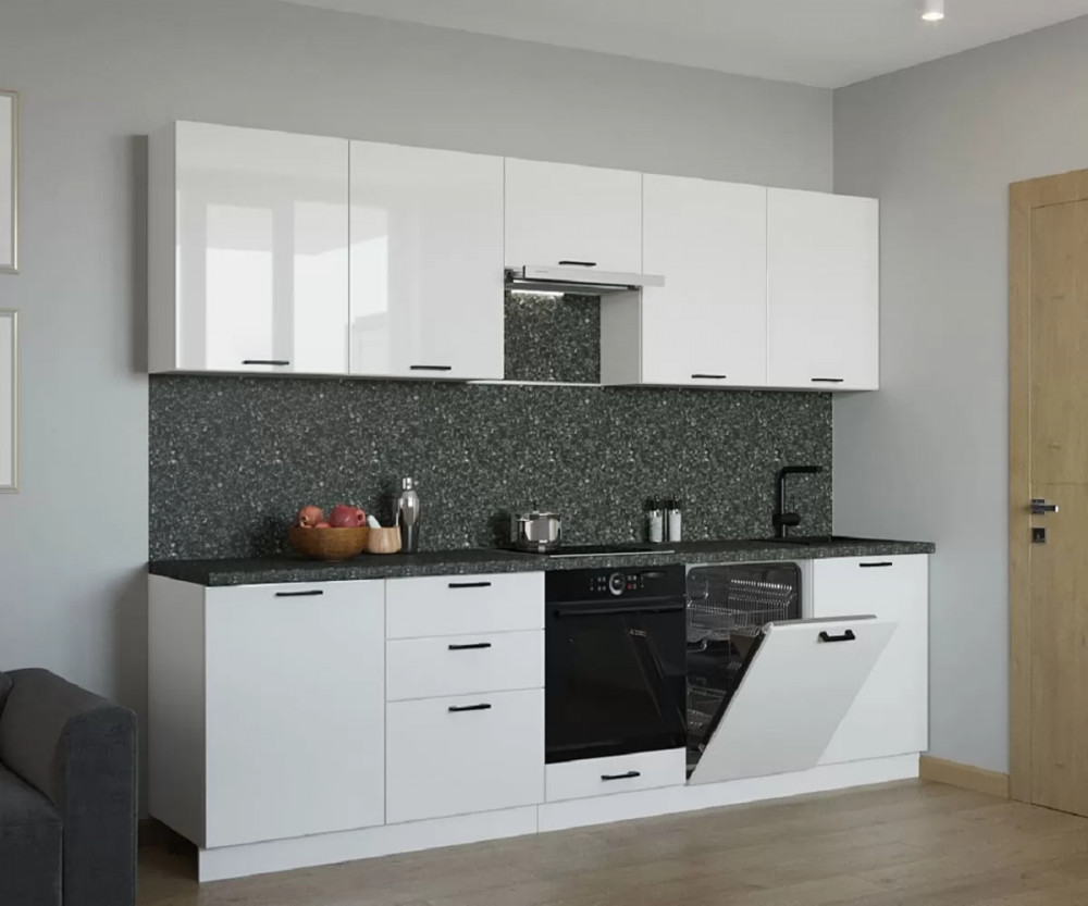 Кухонный прямой гарнитур арт.18, 3000 мм, Белый глянец