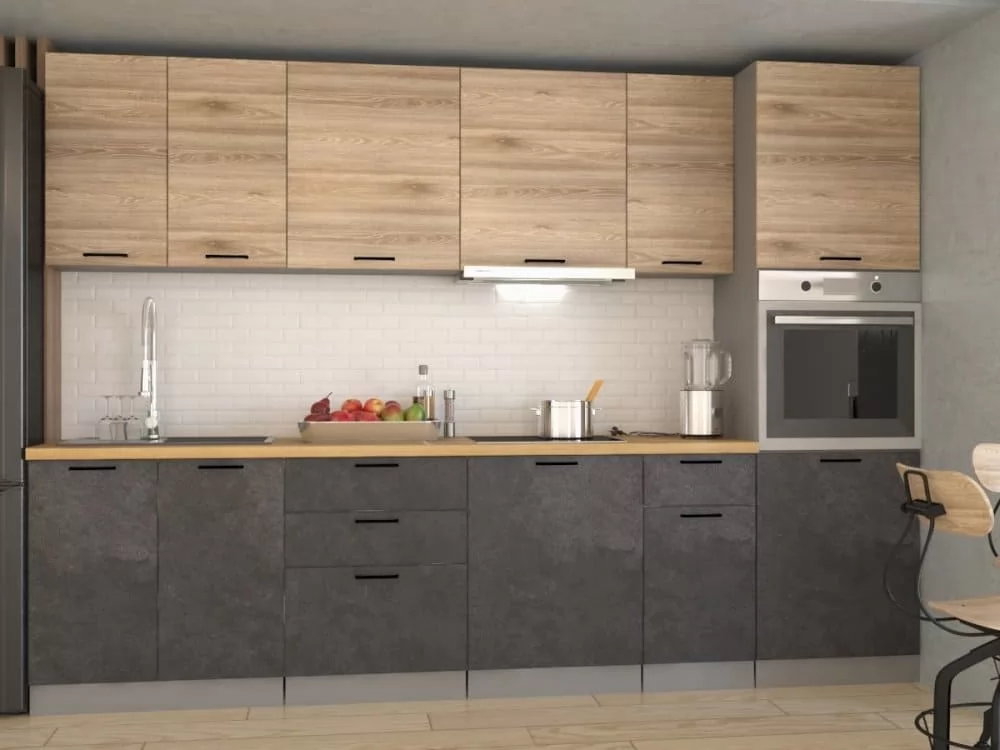 Кухонный прямой гарнитур арт.18 ЛОФТ, 3000 мм, Рустик натур/Бетон темный/Дуб Бунратти