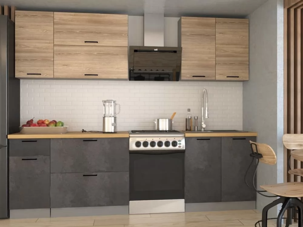 Кухонный прямой гарнитур арт.22 ЛОФТ, 2000 мм, Рустик натур/Бетон темный/Дуб Бунратти
