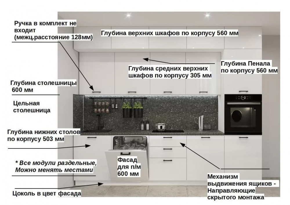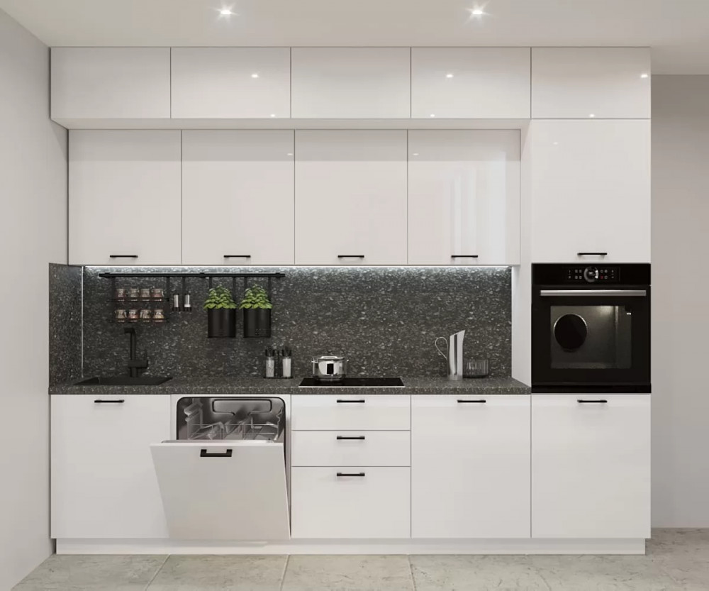 Кухонный прямой гарнитур арт.23, 3000 мм, Белый глянец