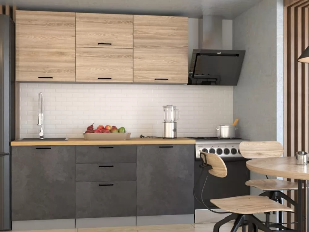 Кухонный прямой гарнитур арт.23 ЛОФТ,1800 мм, Рустик натур/Бетон темный/столешница Дуб Бунратти