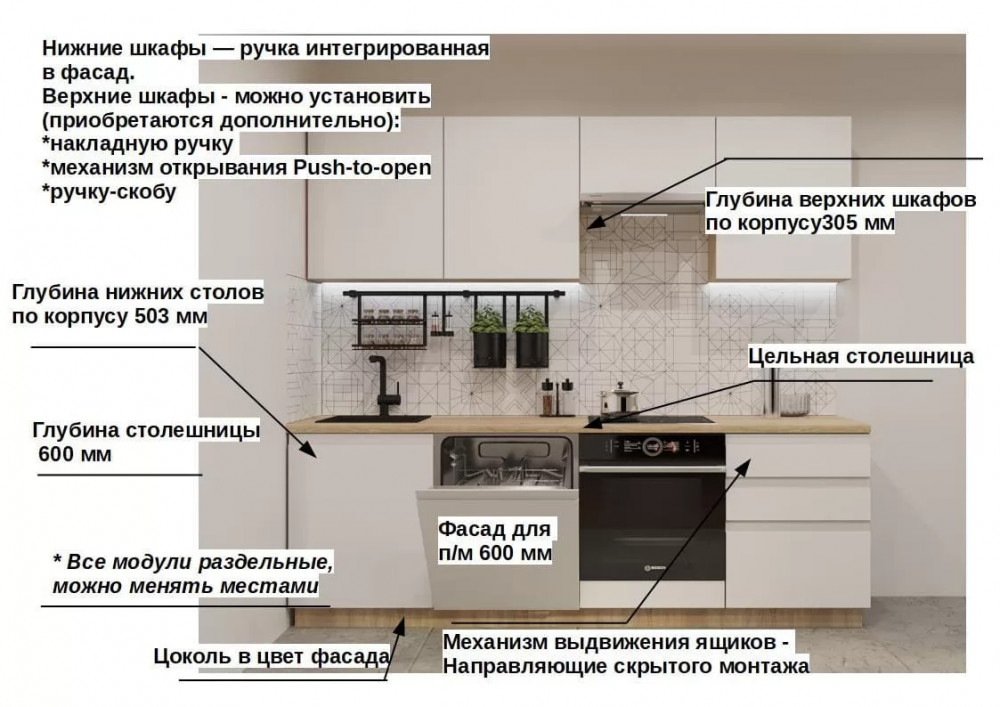 Первое и главное, что нужно знать о кухнях без ручек — варианты подходят ультрасовременным стилям. В интерьере модерн, хай-тек или минимализм такие кухонные гарнитуры будут выглядеть лучше всего.