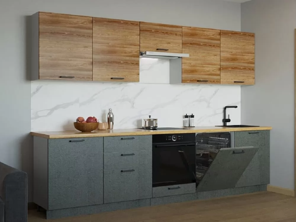 Кухонный прямой гарнитур арт.36 ЛОФТ, 3000 мм, Рустик натур/Бетон темный/Дуб Бунратти
