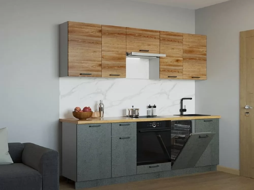 Кухонный прямой гарнитур арт.37 ЛОФТ, 2450 мм, Рустик натур/Бетон темный/Дуб Бунратти