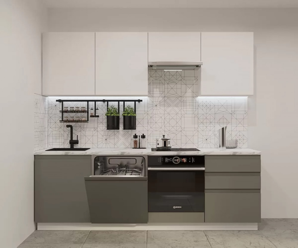Кухонный прямой гарнитур арт.42, 2400 мм, Лайн/Тальк/Пикрит