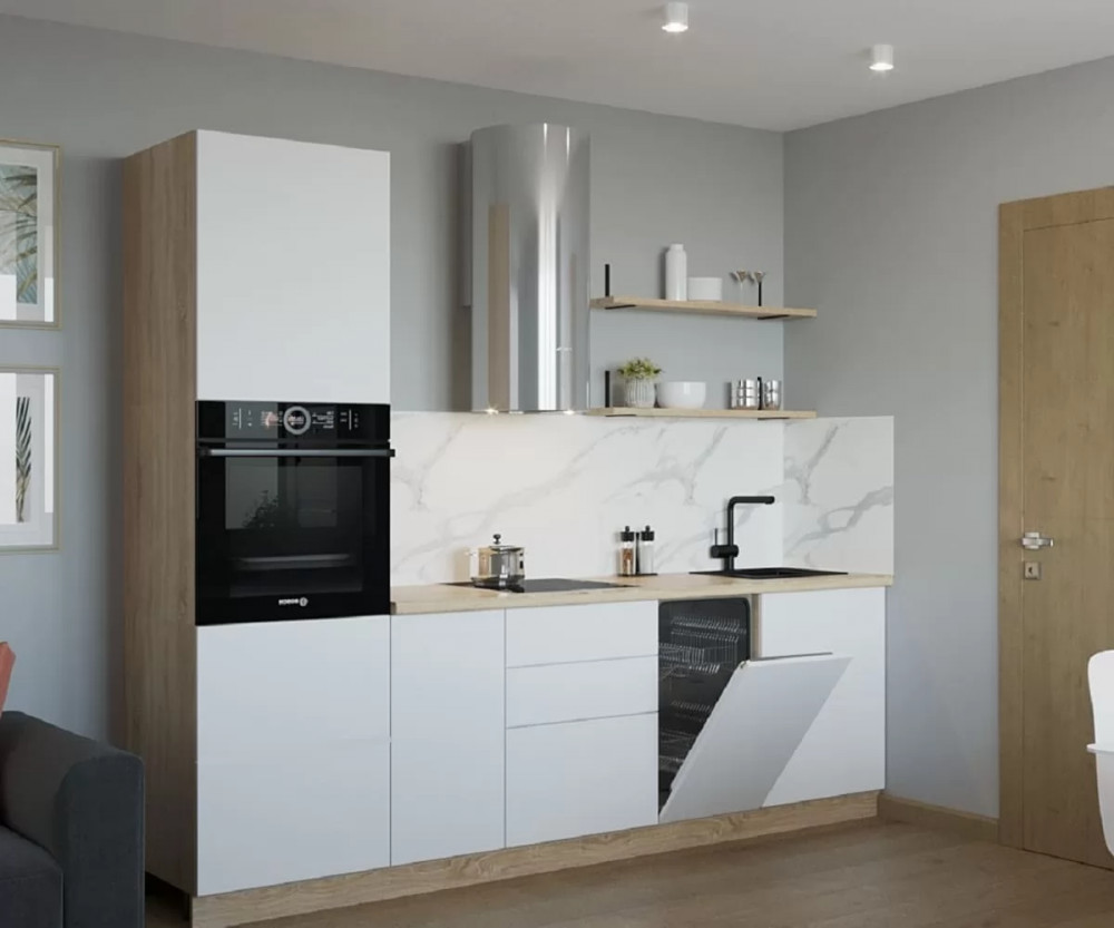 Кухонный прямой гарнитур арт.4, 2650 мм, Тальк/Дуб сонома