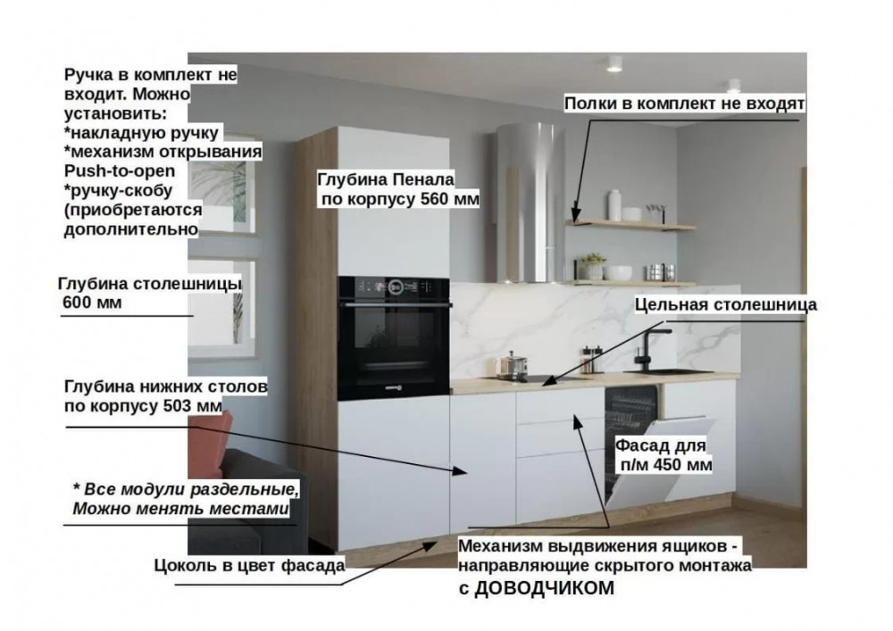 Кухонный прямой гарнитур арт.6, 3000 мм, Тальк/Дуб сонома