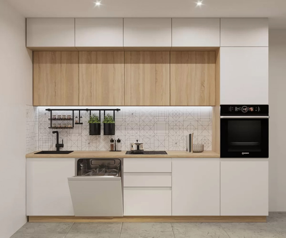 Кухонный прямой гарнитур арт.49, 3000 мм, Лайн/Тальк/Дуб сонома