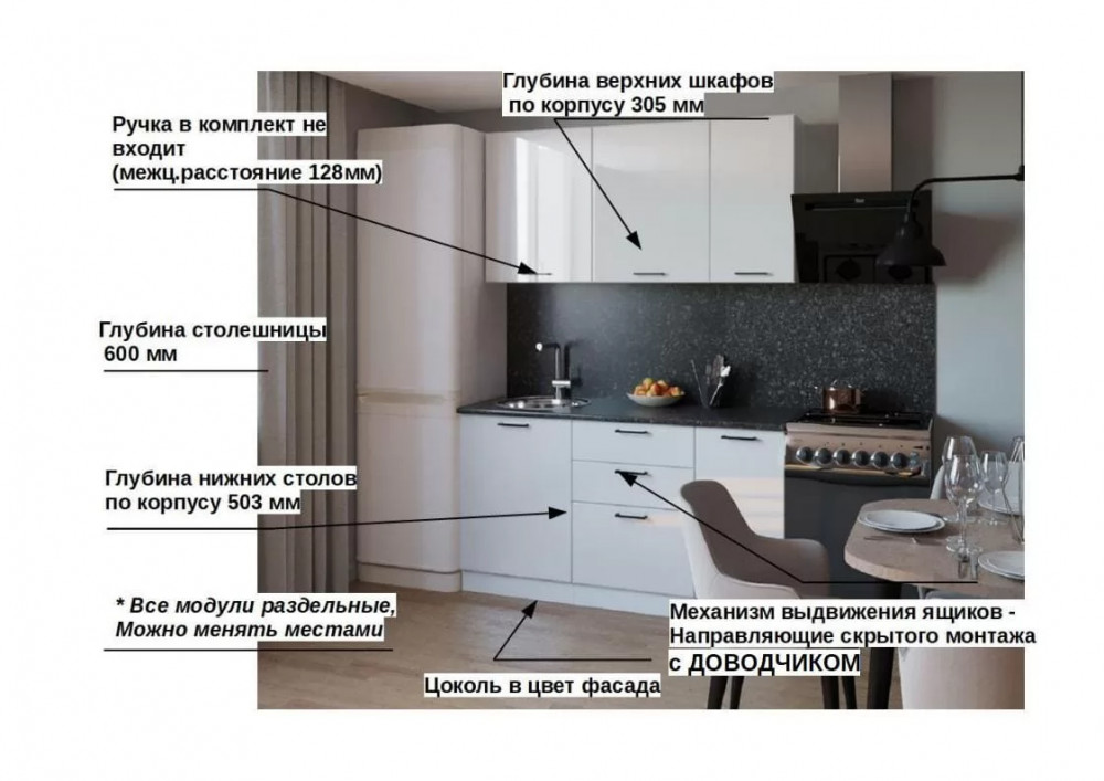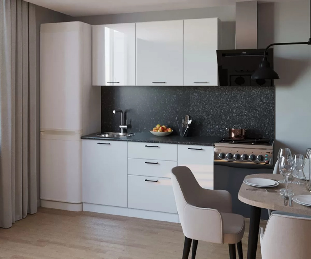 Кухонный прямой гарнитур арт.5, 1600 мм, Белый глянец