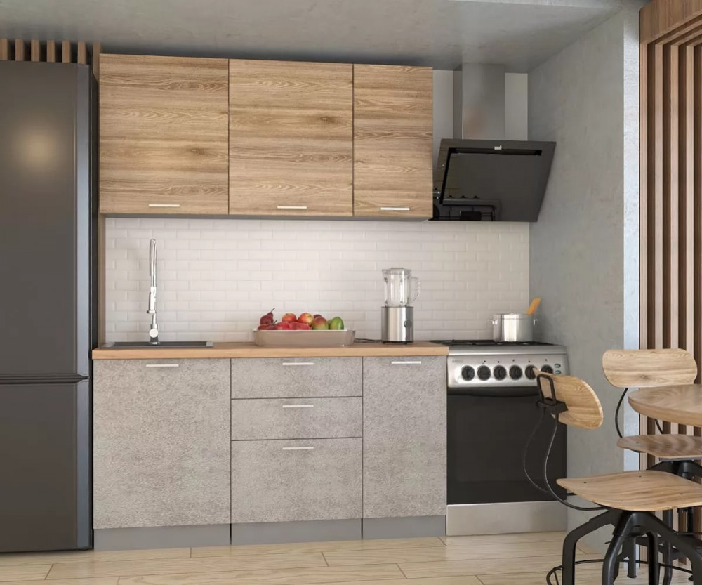 Кухонный прямой гарнитур арт.8 ЛОФТ, 2000 мм, Бетон тёмный/Рустик соломенный