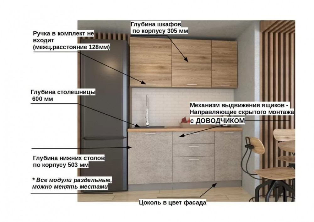 Кухонный гарнитур Лада-1200 столешница 38 мм