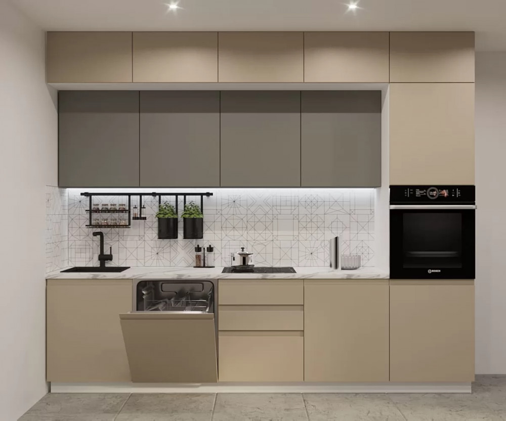 Кухонный прямой гарнитур арт.53, 3000 мм, Лайн/Обсидиан/Тальк