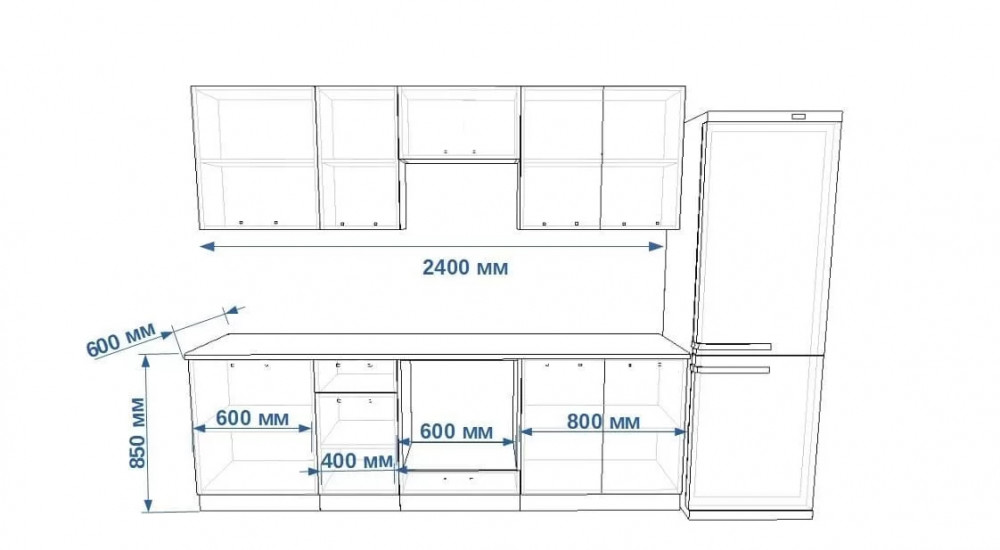 Кухонный прямой гарнитур арт.1, 2400 мм, Океания/Кристалл