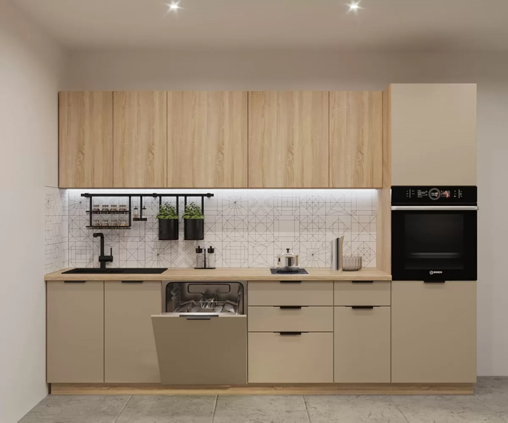 Кухонный прямой гарнитур арт.15, 2800 мм, Фаска/Тальк/Дуб сонома