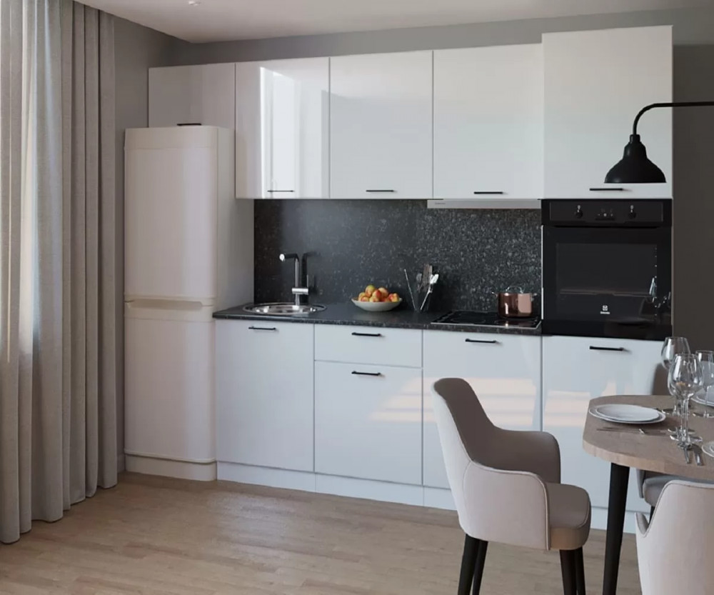 Кухонный прямой гарнитур арт.2, 2800 мм, Белый глянец