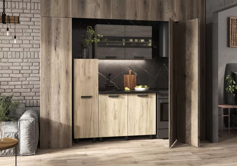 Кухонный гарнитур «Бьянка» длиной 150 см Дуб крафт золотой/Дуб ваниль