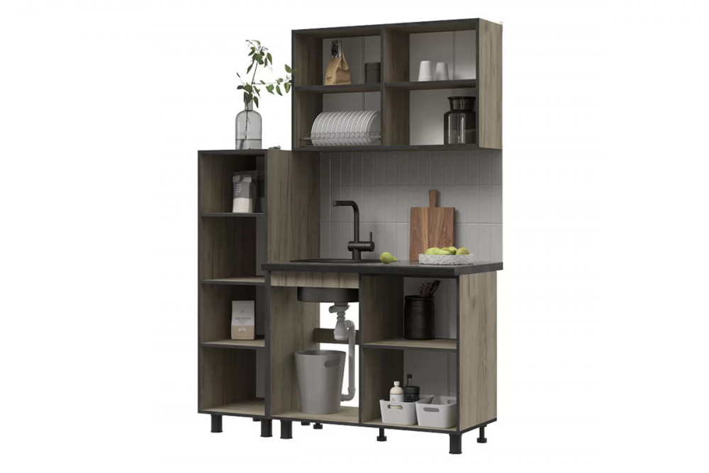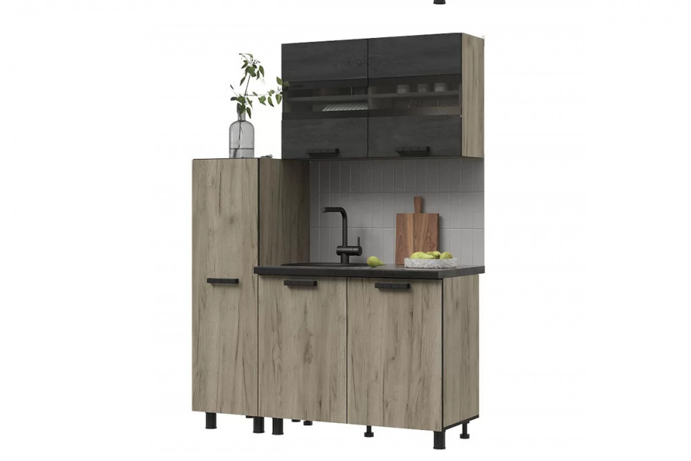 ЭДИНБУРГ Кухня 1.4м, ЛДСП Дуб Крафт Сер/ЛДСП Желез.камень ПФ(38)Черный-1м цельная (б/сушк,мойк 500