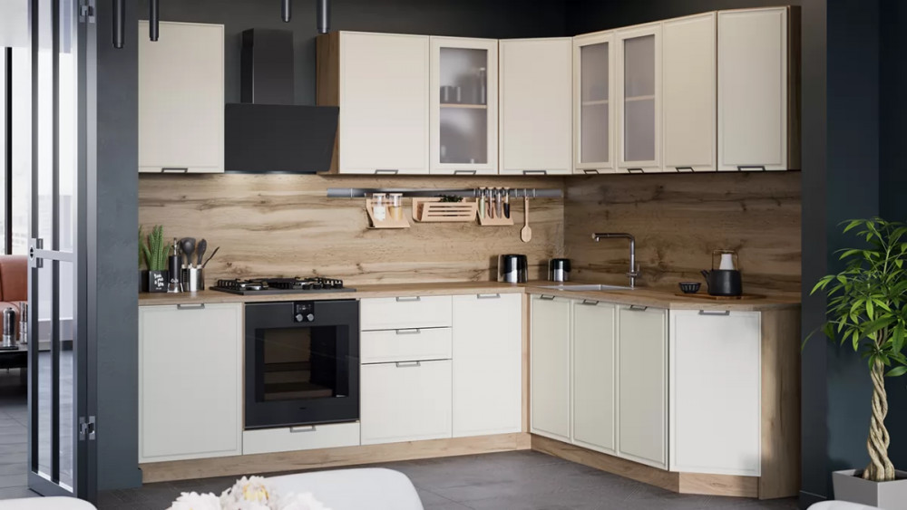 Модульная кухня «Белладжио» Дуб Крафт золотой, Софт панакота, Софт капучино