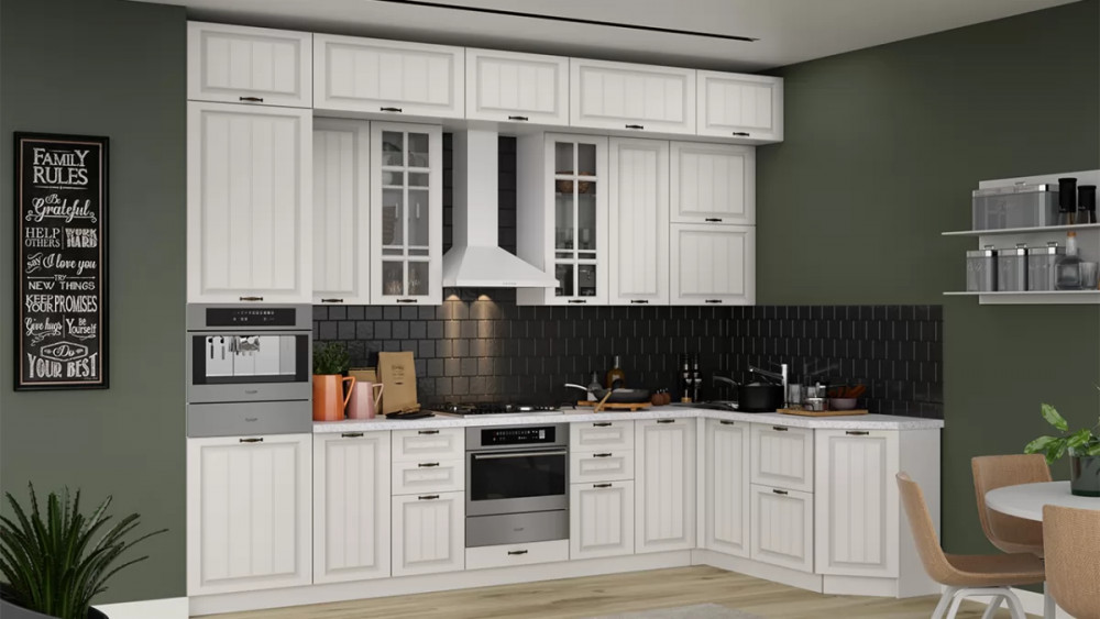 В стоимость не включено: Стеновая панель, столешница, доводчики, бытовая техника, мойка, смеситель, аксессуары