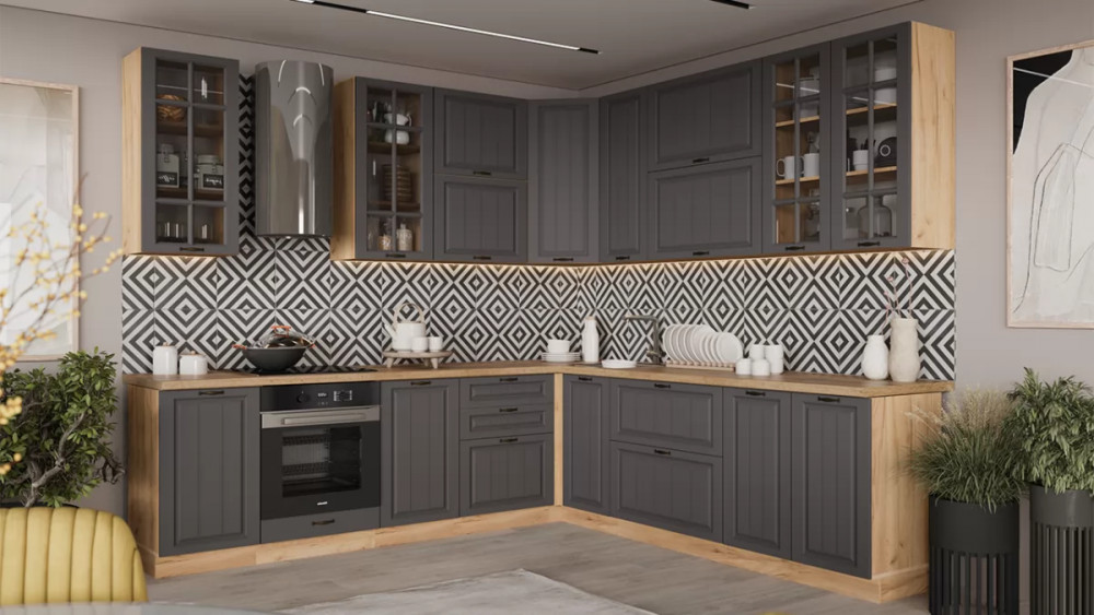 Кухонный гарнитур угловой Смоки-1000х1800 МДФ столешница 38 мм
