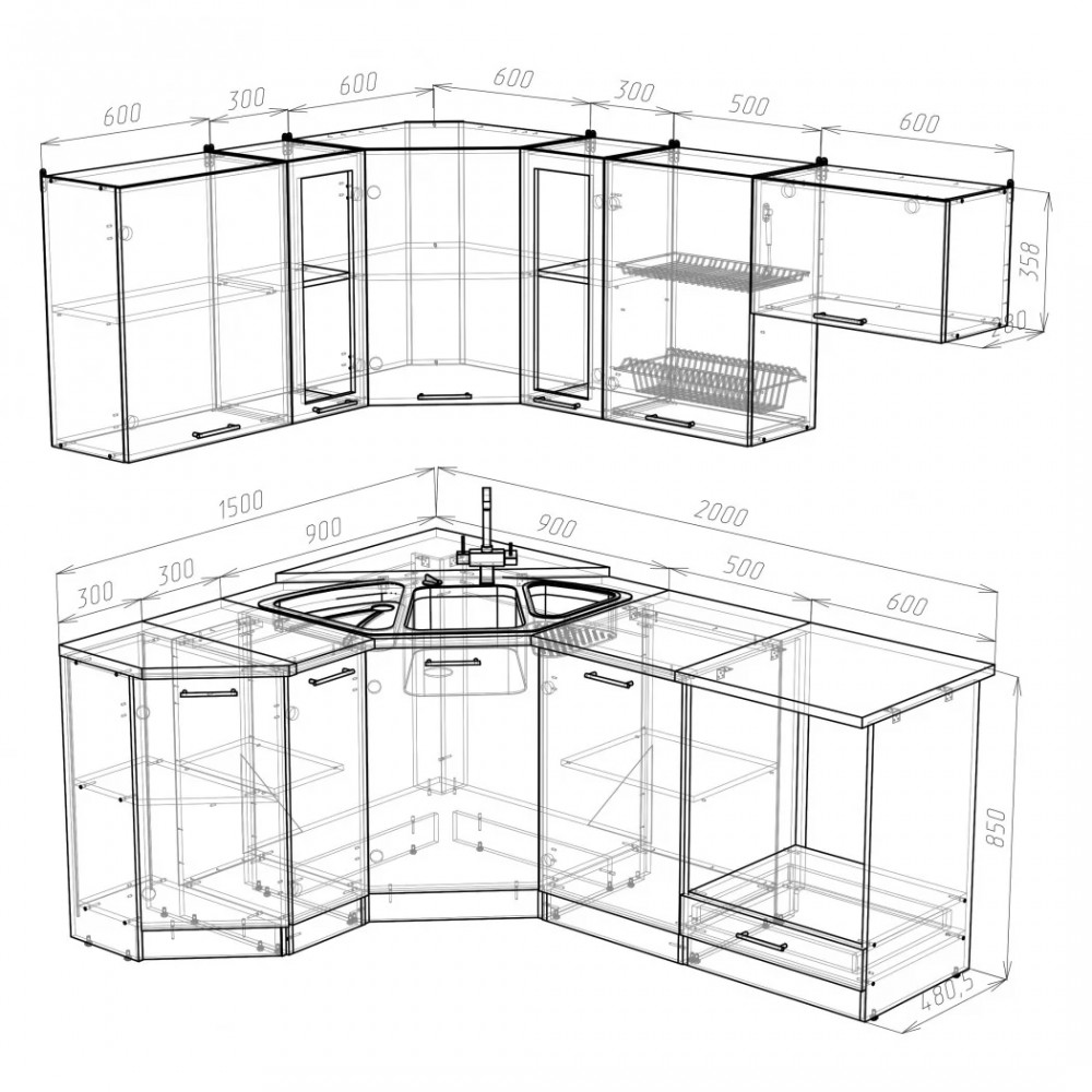 Кухонный гарнитур Лира мега оптима 2000х1500 мм