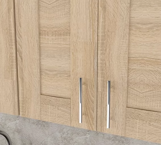 Кухонный гарнитур Ника литл из ЛДСП в модном цвете "Квадро дуб сонома" впишется в современный дизайн интерьера. Подойдет как для частного дома, так и для небольшой квартиры. Напольные и подвесные шкафы позволят разместить всю кухонную утварь. Гарнитур состоит из набора шкафов, которые органично комбинируются между собой. Ящики, полки, навесные шкафы, тумбы и пеналы можно менять местами, создавая практичное рабочее пространство.