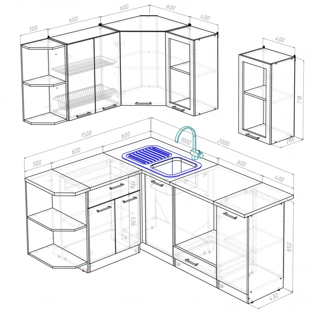 Кухонный гарнитур Ольга прайм 3 1500*2000 мм