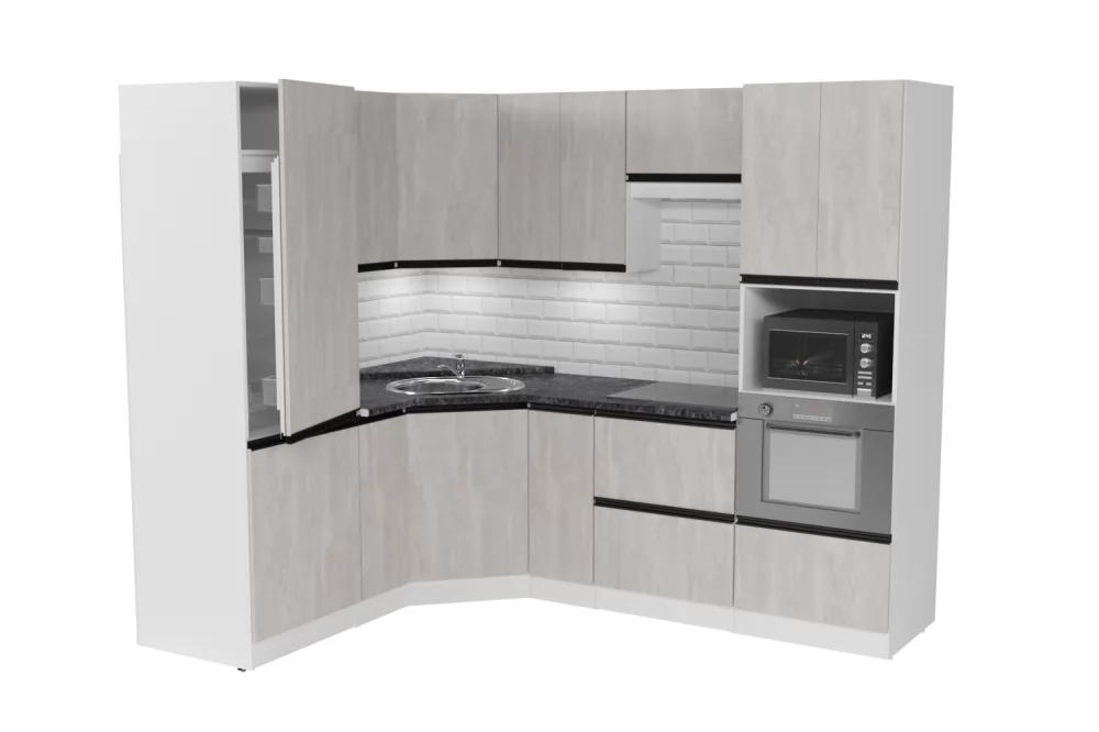 Кухонный гарнитур Сюита из ЛДСП в модном цвете "Бетон светлый" впишется в современный дизайн интерьера. Подойдет как для частного дома, так и для небольшой квартиры. Напольные и подвесные шкафы позволят разместить всю кухонную утварь. Гарнитур состоит из набора шкафов, которые органично комбинируются между собой. Ящики, полки, навесные шкафы, тумбы и пеналы можно менять местами, создавая практичное рабочее пространство.