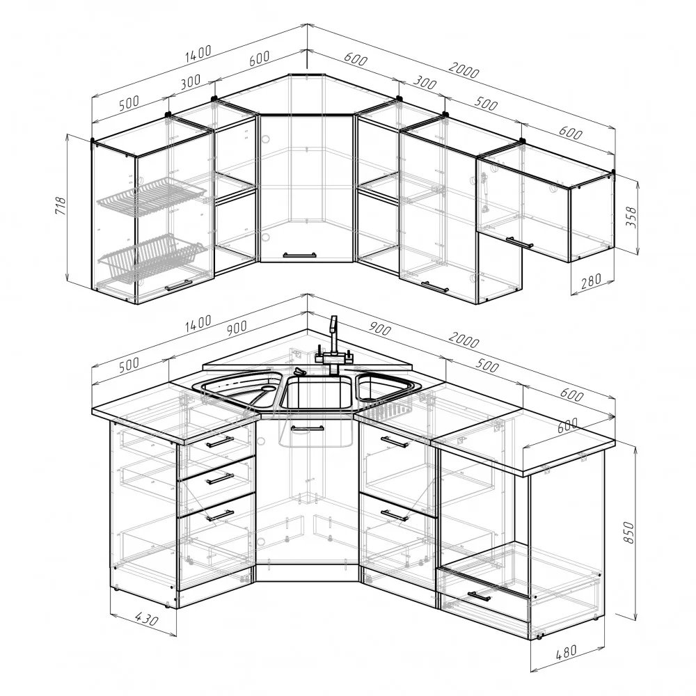 Кухонный гарнитур Томилла оптима 4 1400х2000 мм