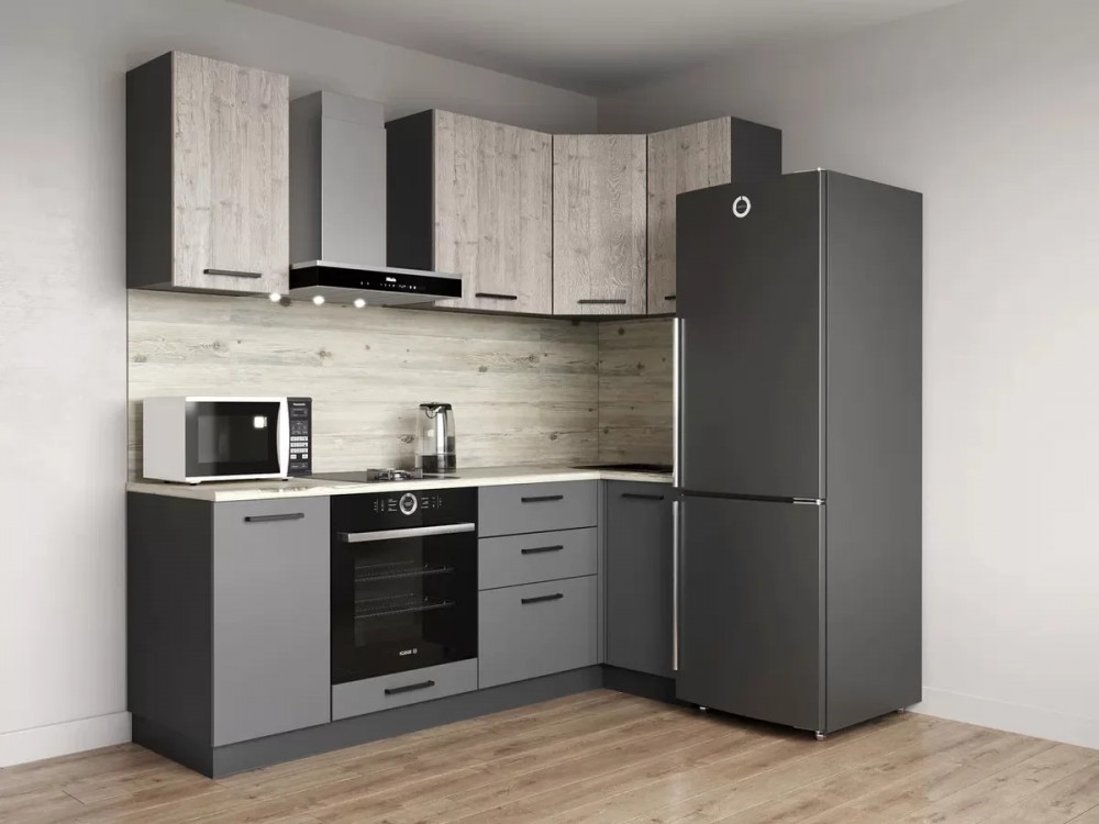 Кухонный угловой гарнитур арт.6, 2450x1200 мм, Тальк/РоялВуд Голубой