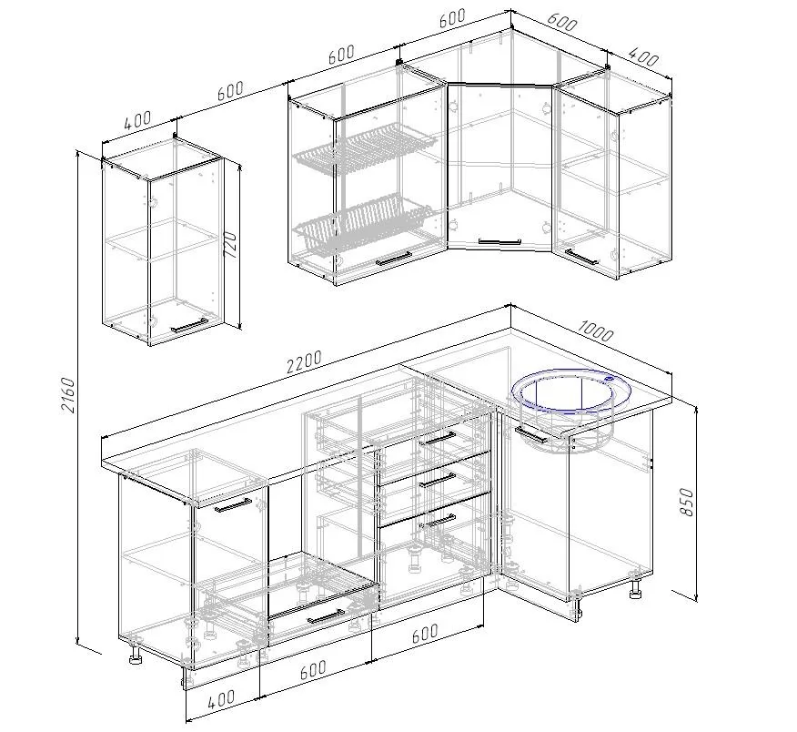 | Размер (ВхШхГ): | 850х2200х1000 мм |