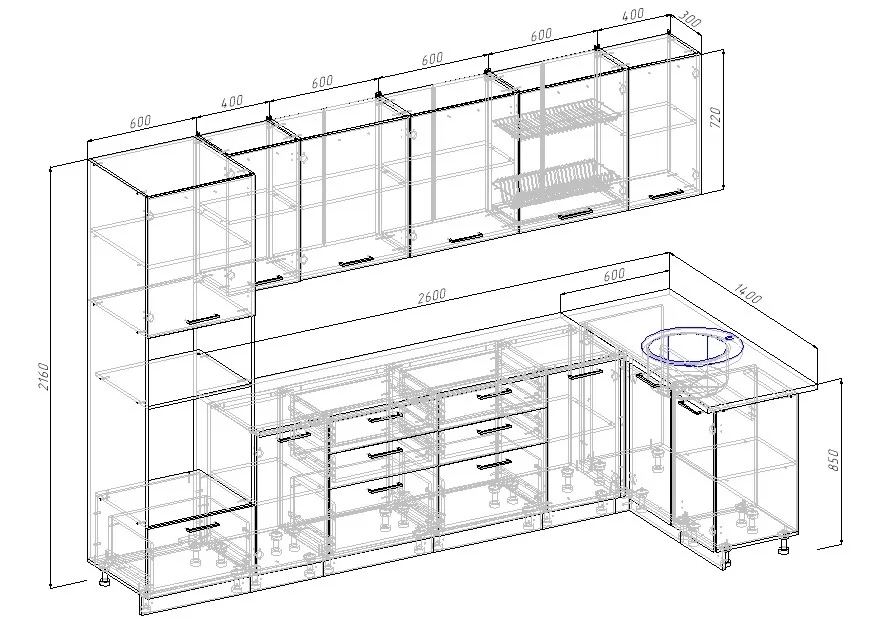 Количество подвесных шкафов : 5