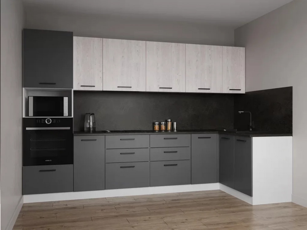 Кухонный гарнитур «Габриэлла» длиной 200 см Дуб крафт золотой/Сноу/Титан