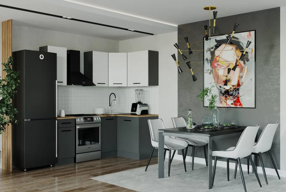 Кухонный гарнитур «Белладжио» длиной 160 см Белый, Фон белый, Софт графит