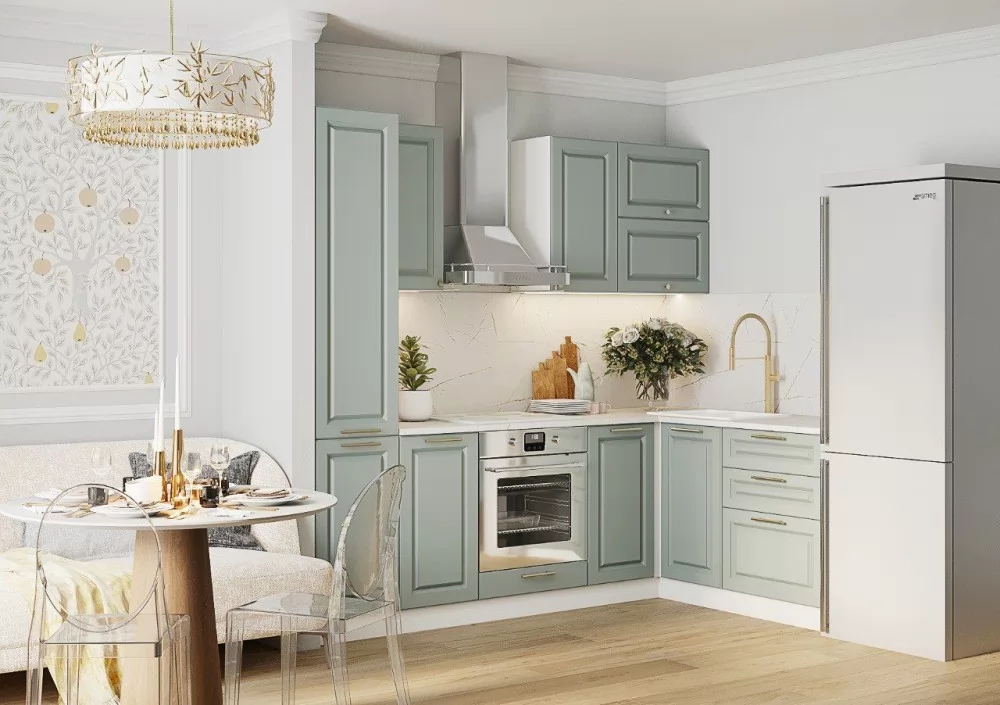 Высота: верхних шкафов 720 мм, нижних - 820 мм.